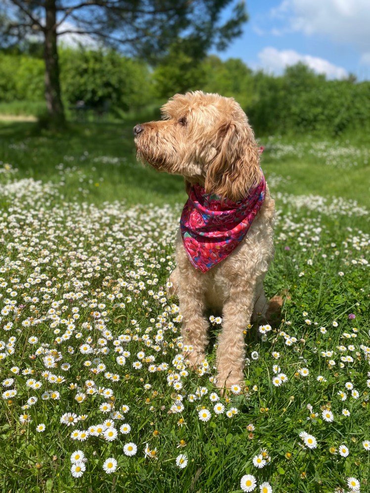 Of course, that patch of daisies is rather bland compared to our beautiful Mala sitting very prettily.